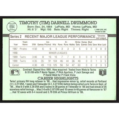 This is a 1991 Donruss Tim Drummond baseball card. The card is #694 and pictures show condition.
