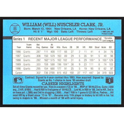 This is a 1991 Donruss Will Clark baseball card. The card is #86 and pictures show condition.