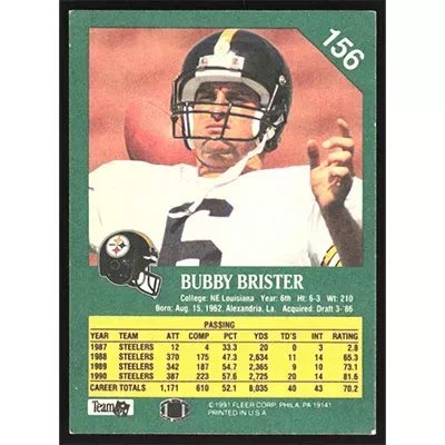 This is a 1991 Fleer Bubby Brister football card. The card is #156 and pictures show condition.