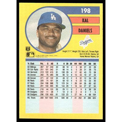 This is a 1991 Fleer Kal Daniels baseball card. The card is #198 and pictures show condition.