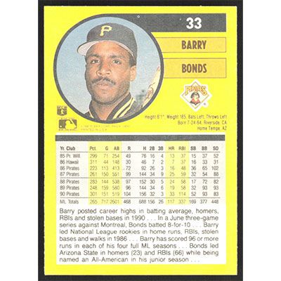 This is a 1991 Fleer Barry Bonds baseball card. The card is #33 and pictures show condition.