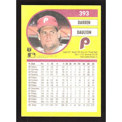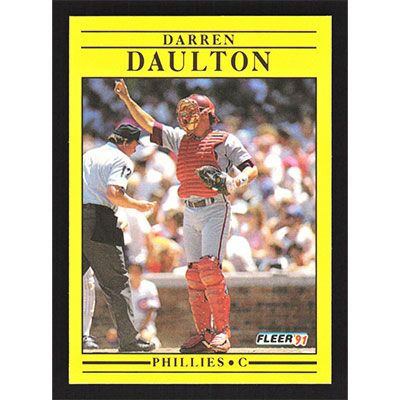 This is a 1991 Fleer Darren Daulton baseball card. The card is #393 and pictures show condition.