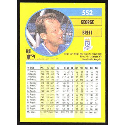 This is a 1991 Fleer George Brett baseball card. The card is #552 and pictures show condition.