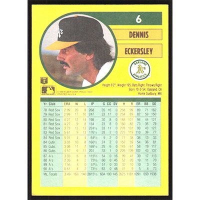 This is a 1991 Fleer Dennis Eckersley baseball card. The card is #6 and pictures show condition.
