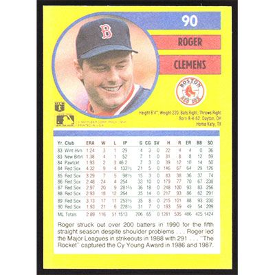 This is a 1991 Fleer Roger Clemens baseball card. The card is #90 and pictures show condition.