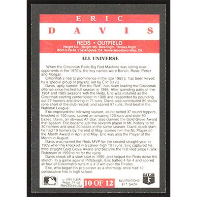 This is a 1991 Fleer Pro-Visions Eric Davis baseball card. The card is #10 and pictures show condition.
