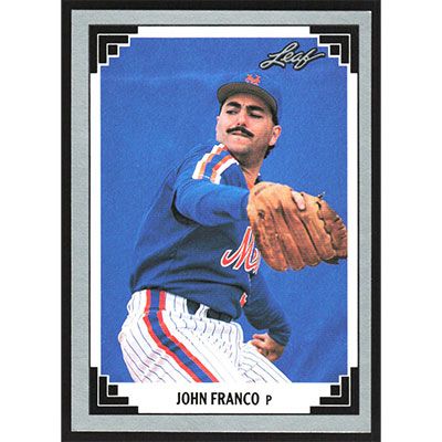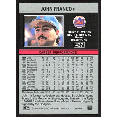 This is a 1991 Leaf John Franco baseball card. The card is #437 and pictures show condition.