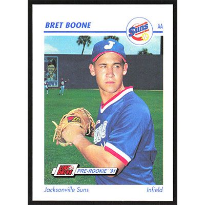 This is a 1991 Line Drive AA Bret Boone baseball card. The card is #330 and pictures show condition.