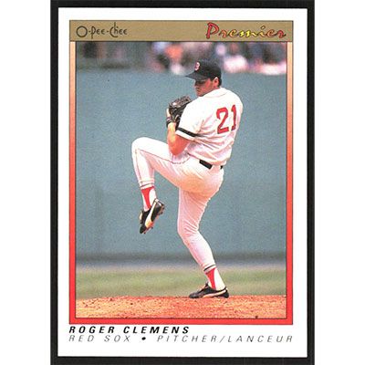 This is a 1991 O-Pee-Chee Premier Roger Clemens baseball card. The card is #23 and pictures show condition.