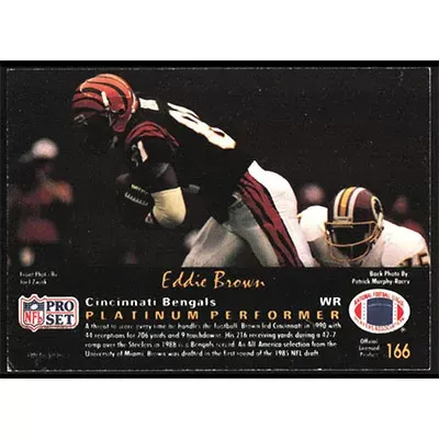 This is a 1991 Pro Set Platinum Eddie Brown football card. The card is #166 and pictures show condition.