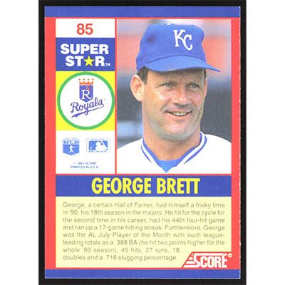 This is a 1991 Score 100 Superstars George Brett baseball card. The card is #85 and pictures show condition.