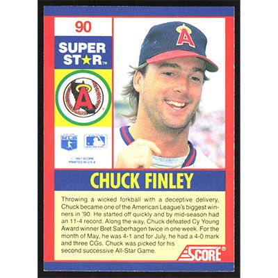 This is a 1991 Score 100 Superstars Chuck Finley baseball card. The card is #90 and pictures show condition.