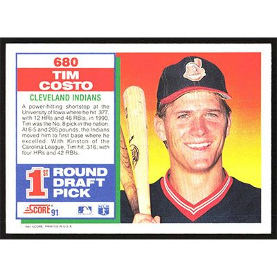 This is a 1991 Score Tim Costo baseball card. The card is #680 and pictures show condition.