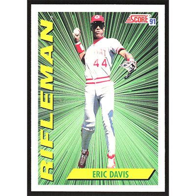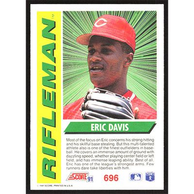 This is a 1991 Score Eric Davis Rifleman baseball card. The card is #696 and pictures show condition.