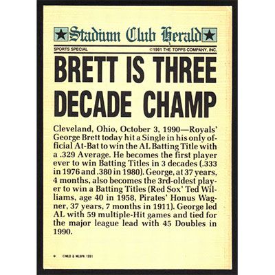 This is a 1991 Stadium Club Charter Member George Brett baseball card. The card is #2 and pictures show condition.