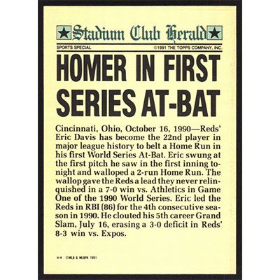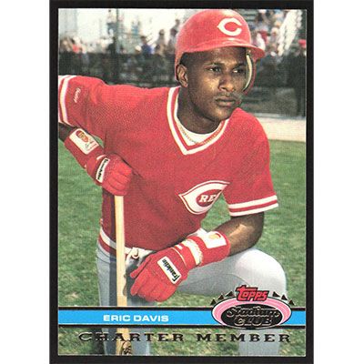 This is a 1991 Stadium Club Charter Member Eric Davis baseball card. The card is #5 and pictures show condition.