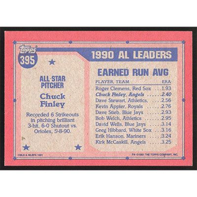This is a 1991 Topps Chuck Finley All-Star baseball card. The card is #395 and pictures show condition.