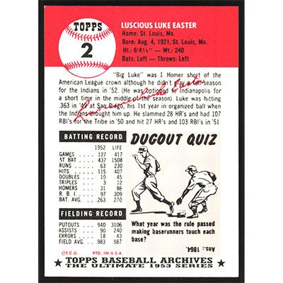 This is a 1991 Topps Archives 1953 Luke Easter baseball card. The card is #2 and pictures show condition.