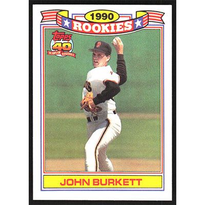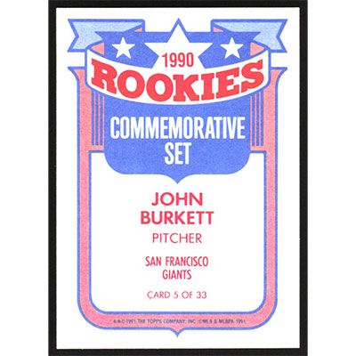 This is a 1991 Topps Rookies John Burkett baseball card. The card is #5 and pictures show condition.