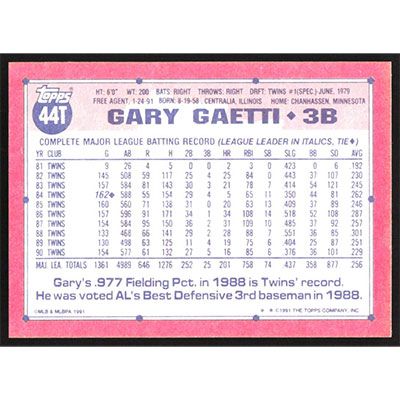 This is a 1991 Topps Traded Gary Gaetti baseball card. The card is #44T and pictures show condition.