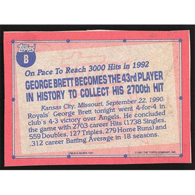 This is a 1991 Topps Wax Box Cards George Brett baseball card. The card is #B and pictures show condition.