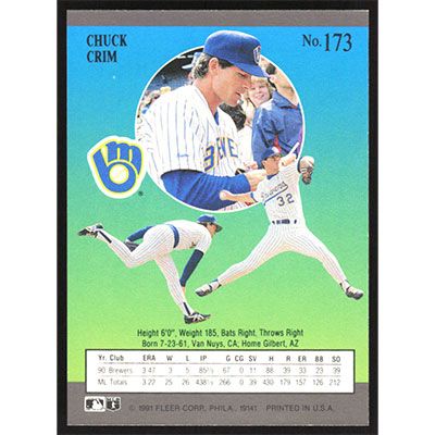 This is a 1991 Ultra Chuck Crim baseball card. The card is #173 and pictures show condition.