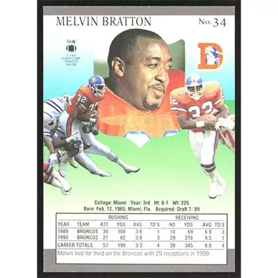 This is a 1991 Ultra Melvin Bratton football card. The card is #34 and pictures show condition.