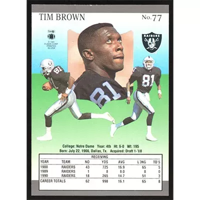 This is a 1991 Ultra Tim Brown football card. The card is #77 and pictures show condition.