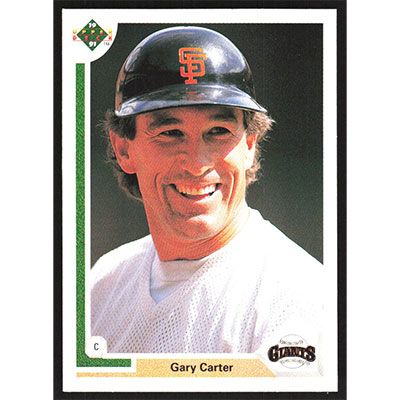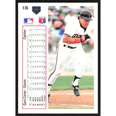 This is a 1991 Upper Deck Gary Carter baseball card. The card is #176 and pictures show condition.