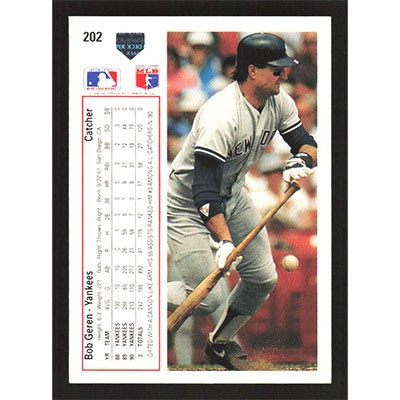 This is a 1991 Upper Deck Bob Geren baseball card. The card is #202 and pictures show condition.