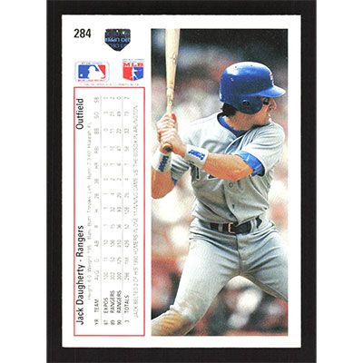 This is a 1991 Upper Deck Jack Daugherty baseball card. The card is #284 and pictures show condition.