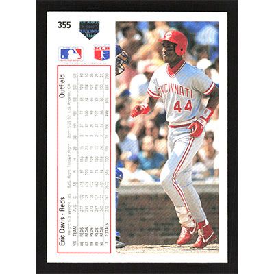 This is a 1991 Upper Deck Eric Davis baseball card. The card is #355 and pictures show condition.