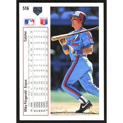 This is a 1991 Upper Deck Mike Fitzgerald baseball card. The card is #516 and pictures show condition.