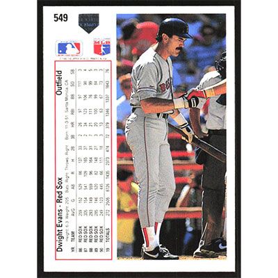 This is a 1991 Upper Deck Dwight Evans baseball card. The card is #549 and pictures show condition.
