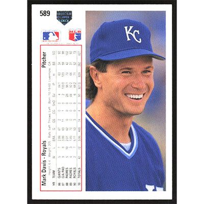 This is a 1991 Upper Deck Mark Davis baseball card. The card is #589 and pictures show condition.