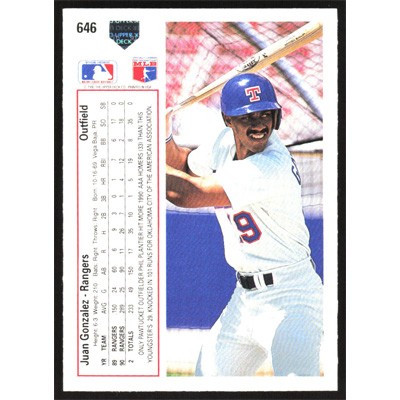 This is a 1991 Upper Deck Juan Gonzalez baseball card. The card is #646 and pictures show condition.