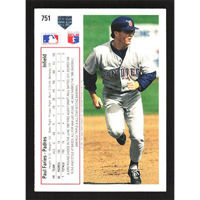 This is a 1991 Upper Deck Paul Faries baseball card. The card is #751 and pictures show condition.