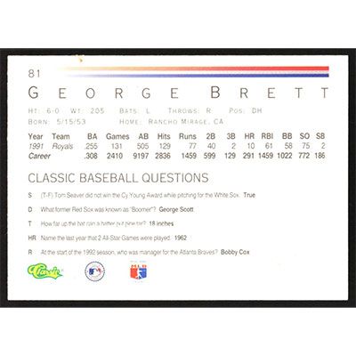 This is a 1992 Classic Game George Brett baseball card. The card is #81 and pictures show condition.