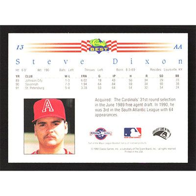This is a 1992 Classic/Best Steve Dixon baseball card. The card is #13 and pictures show condition.