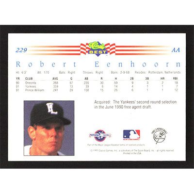 This is a 1992 Classic/Best Robert Eenhoorn baseball card. The card is #229 and pictures show condition.