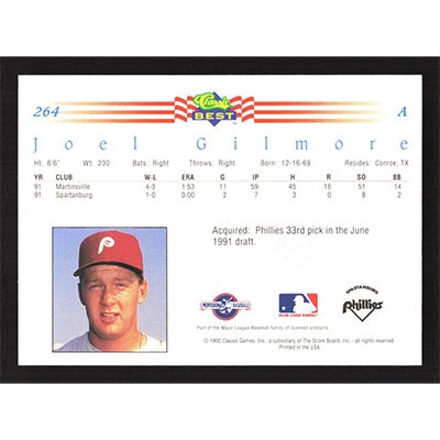 This is a 1992 Classic/Best Joel Gilmore baseball card. The card is #264 and pictures show condition.
