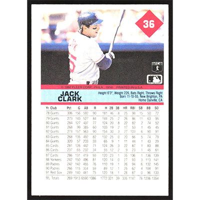 This is a 1992 Fleer Jack Clark baseball card. The card is #36 and pictures show condition.