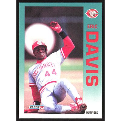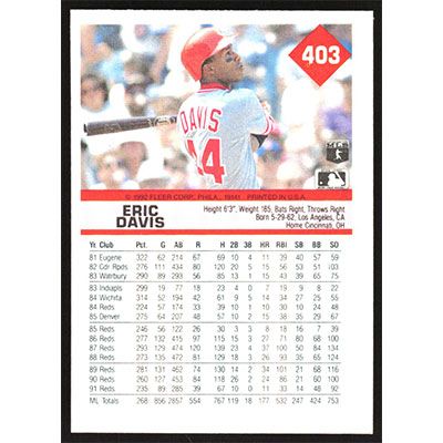 This is a 1992 Fleer Eric Davis baseball card. The card is #403 and pictures show condition.