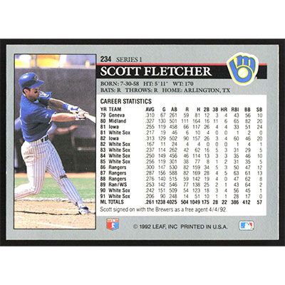 This is a 1992 Leaf Scott Fletcher baseball card. The card is #234 and pictures show condition.