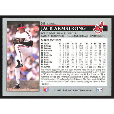 This is a 1992 Leaf Jack Armstrong baseball card. The card is #247 and pictures show condition.