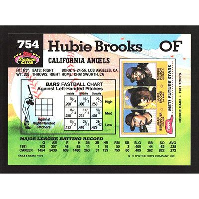 This is a 1992 Stadium Club Hubie Brooks baseball card. The card is #754 and pictures show condition.