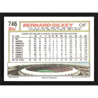 This is a 1992 Topps Bernard Gilkey baseball card. The card is #746 and pictures show condition.