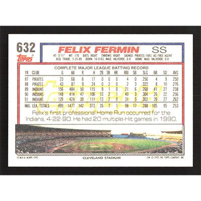 This is a 1992 Topps Gold Felix Fermin baseball card. The card is #632 and pictures show condition.