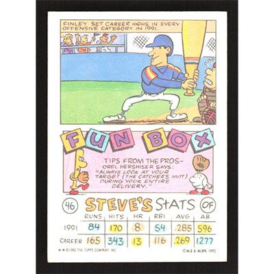 This is a 1992 Topps Kids Steve Finley baseball card. The card is #46 and pictures show condition.