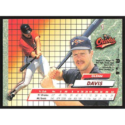 This is a 1992 Ultra Glenn Davis baseball card. The card is #1 and pictures show condition.
